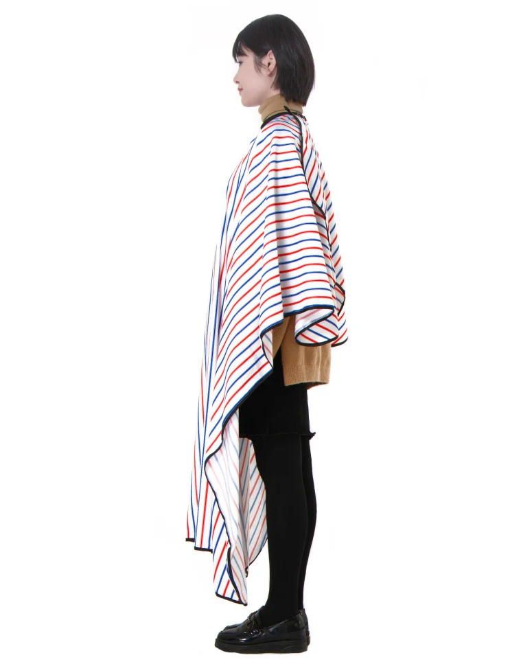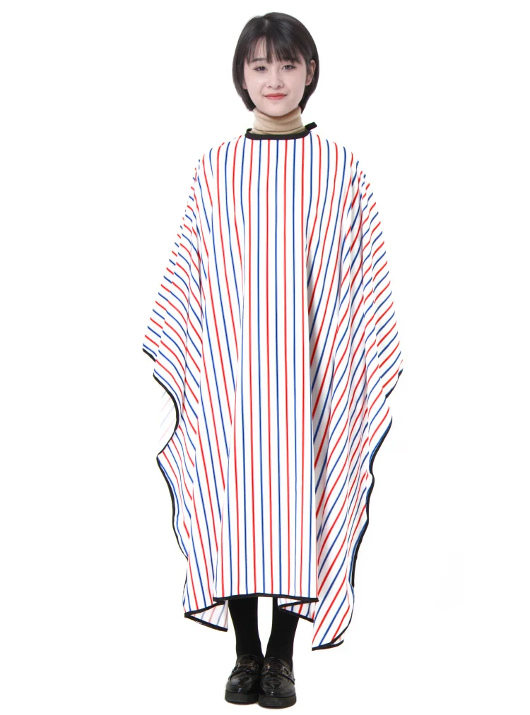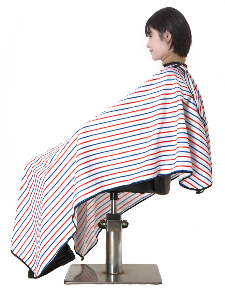 This product is a striated apron for hairdressing. It is soft and long, suitable for both adults and children. It is a necessary tool for barber hairdressers.